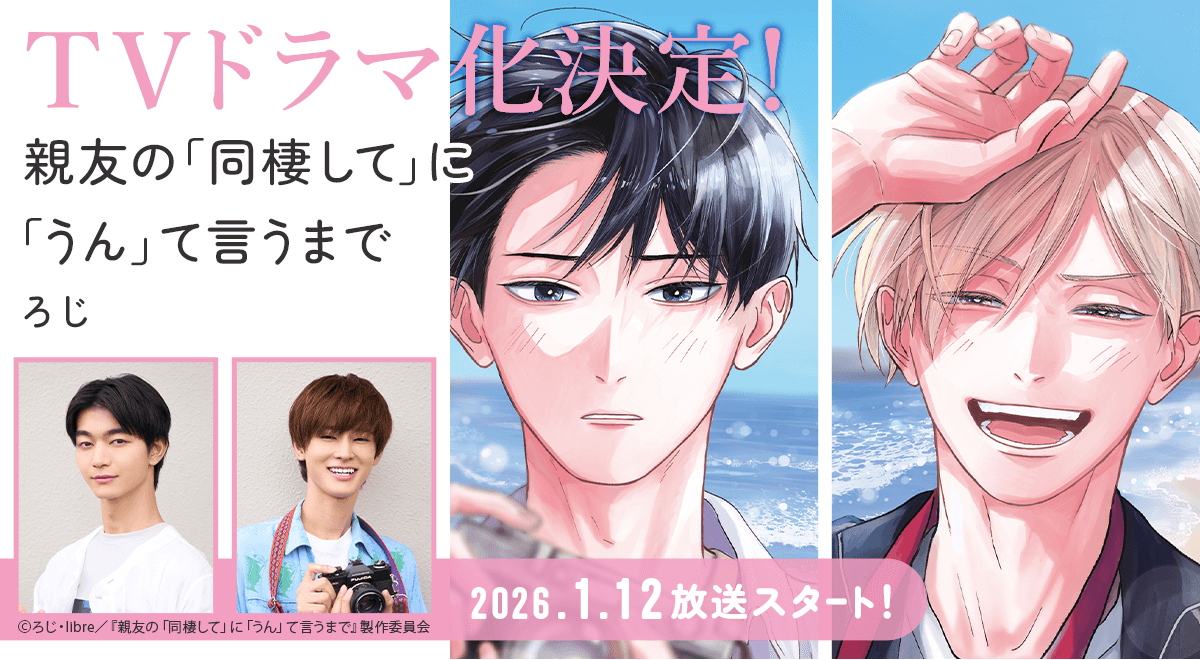 第15回BLアワード2024でラブコメランキング第5位を受賞した大人気BLコミックス『親友の「同棲して」に「うん」て言うまで』(ろじ/月刊マガジンビーボーイ連載/リブレ刊)が、2026年1月12日(月)より読売テレビ・ドラマDiVE枠(読売テレビ:毎週月曜深夜1:29~※放送時間は変更になる可能性がございます。)にて、実写ドラマ化することが決定しました!